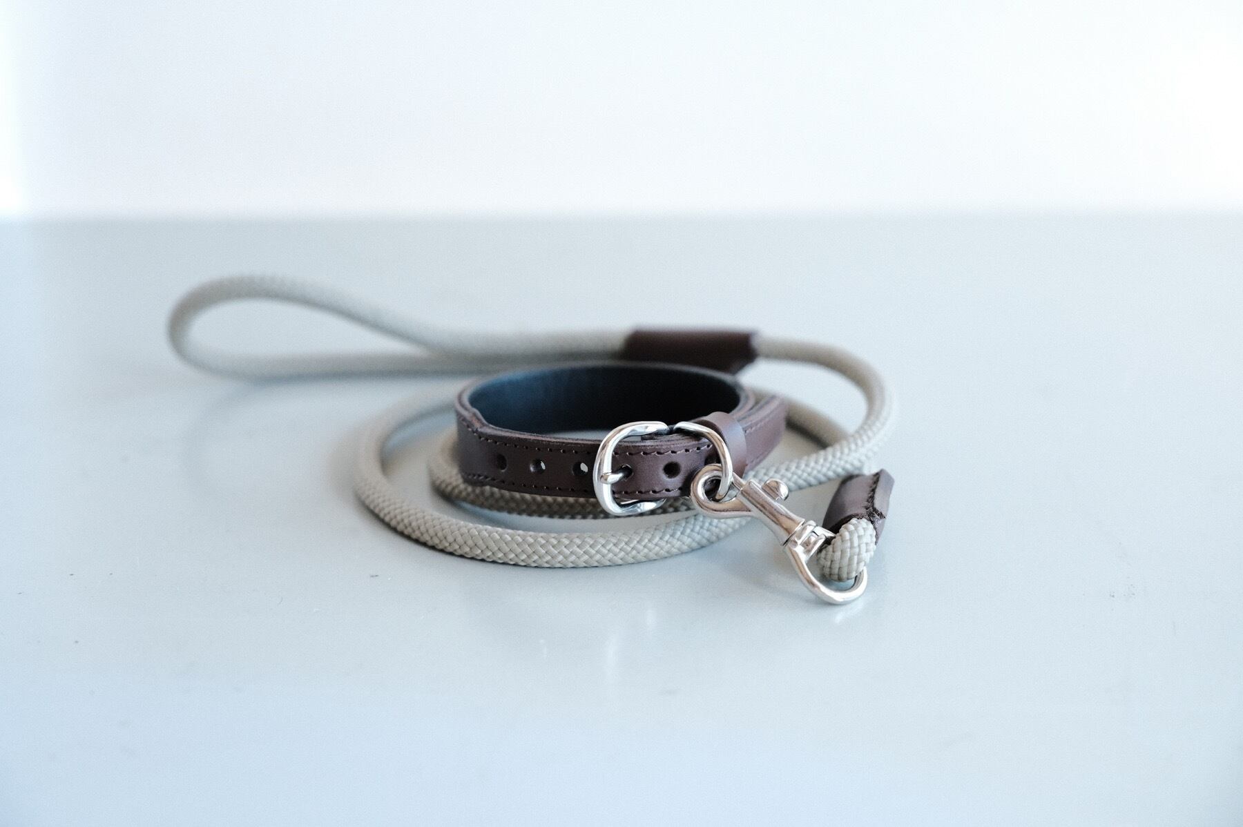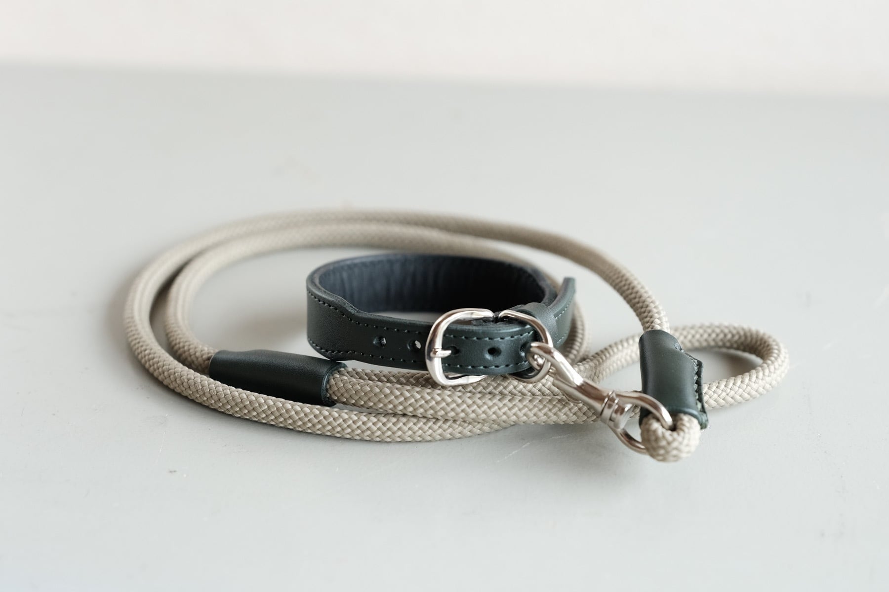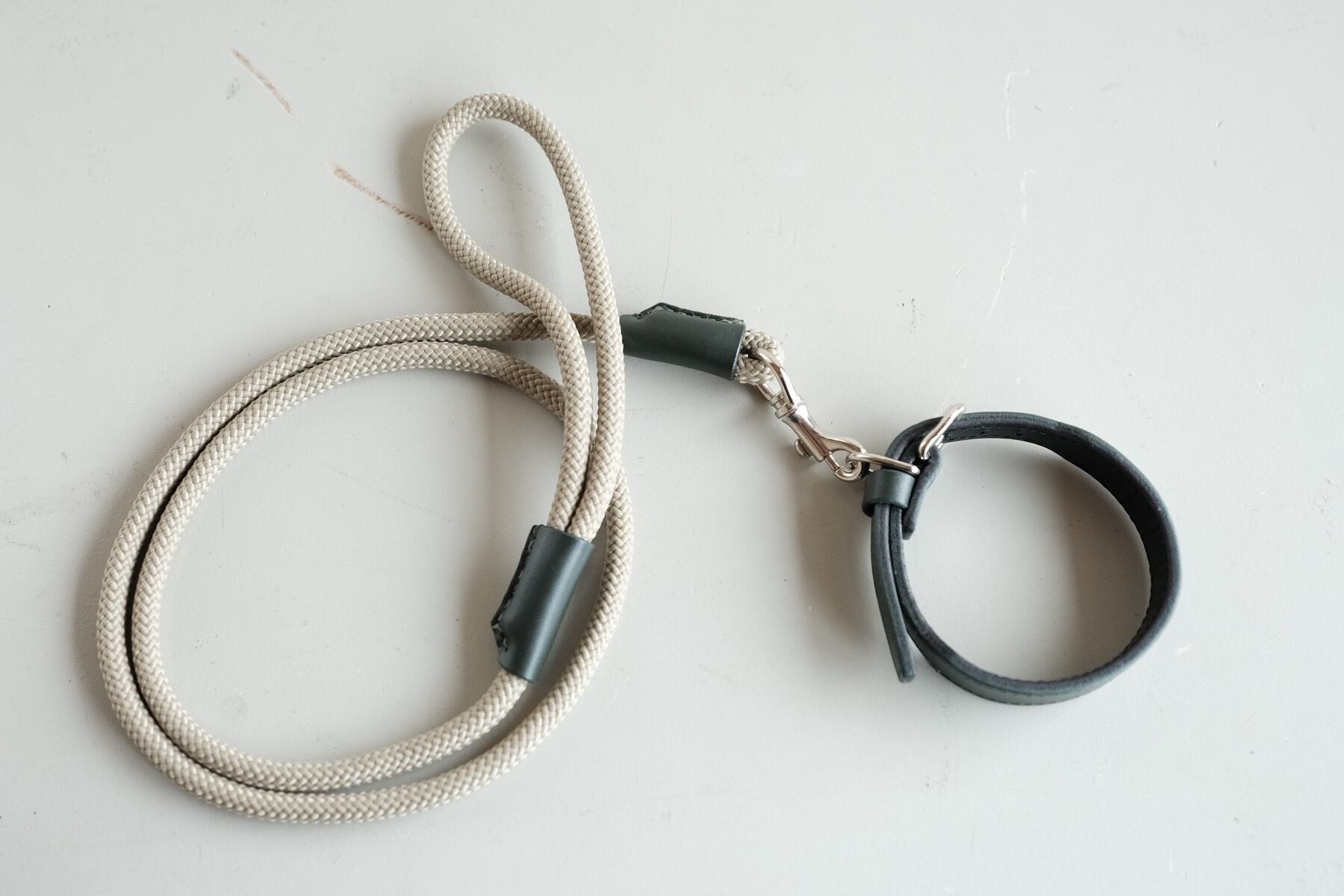 リードはアウトドアで使われるロープを使っているので耐久度が高いのと、革の部分を少なくしているので雨の日などでもがしがしお使い頂けるんじゃないかなと思います。